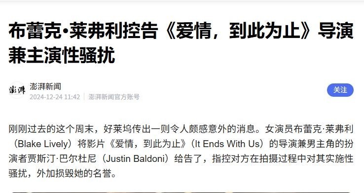 而当莱弗利试图提出异议时,等待她的不是协商,而是精心策划的反制。2024年8月,在《此情此刻》全球宣传高峰期,一段所谓“莱弗利嘲笑记者腹部赘肉”的视频突然在网络爆红,引发超过6500万条关联讨论,绝大多数舆论将其描绘成傲慢无礼、盛气凌人的公众形象。